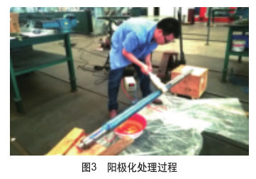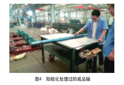 陽極化處理過程、陽極化處理過的成品軸、氧化層厚度和金相檢測結(jié)果分別如圖3~圖5所示。